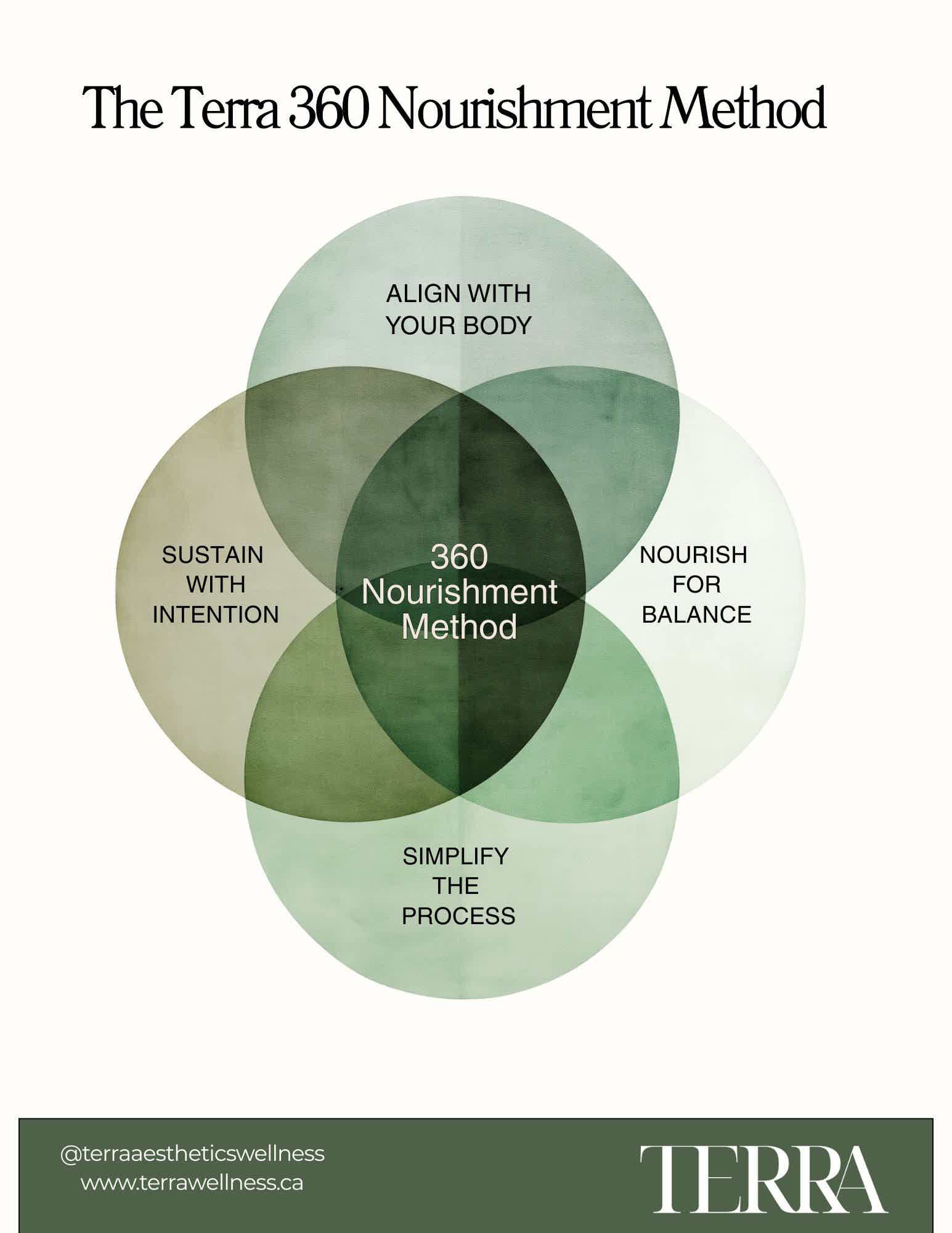 At Terra, we've developed the 360 Nourishment Method precisely because the old paradigm doesn't work for midlife bodies. This isn't another diet. It's a complete reimagining of how you nourish yourself.
